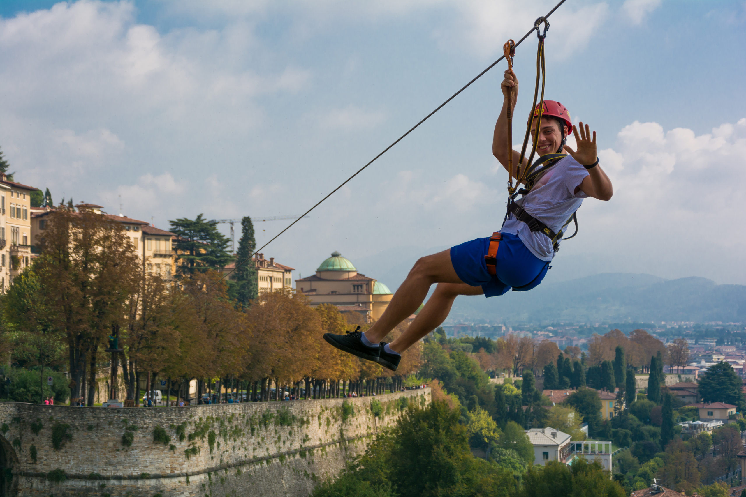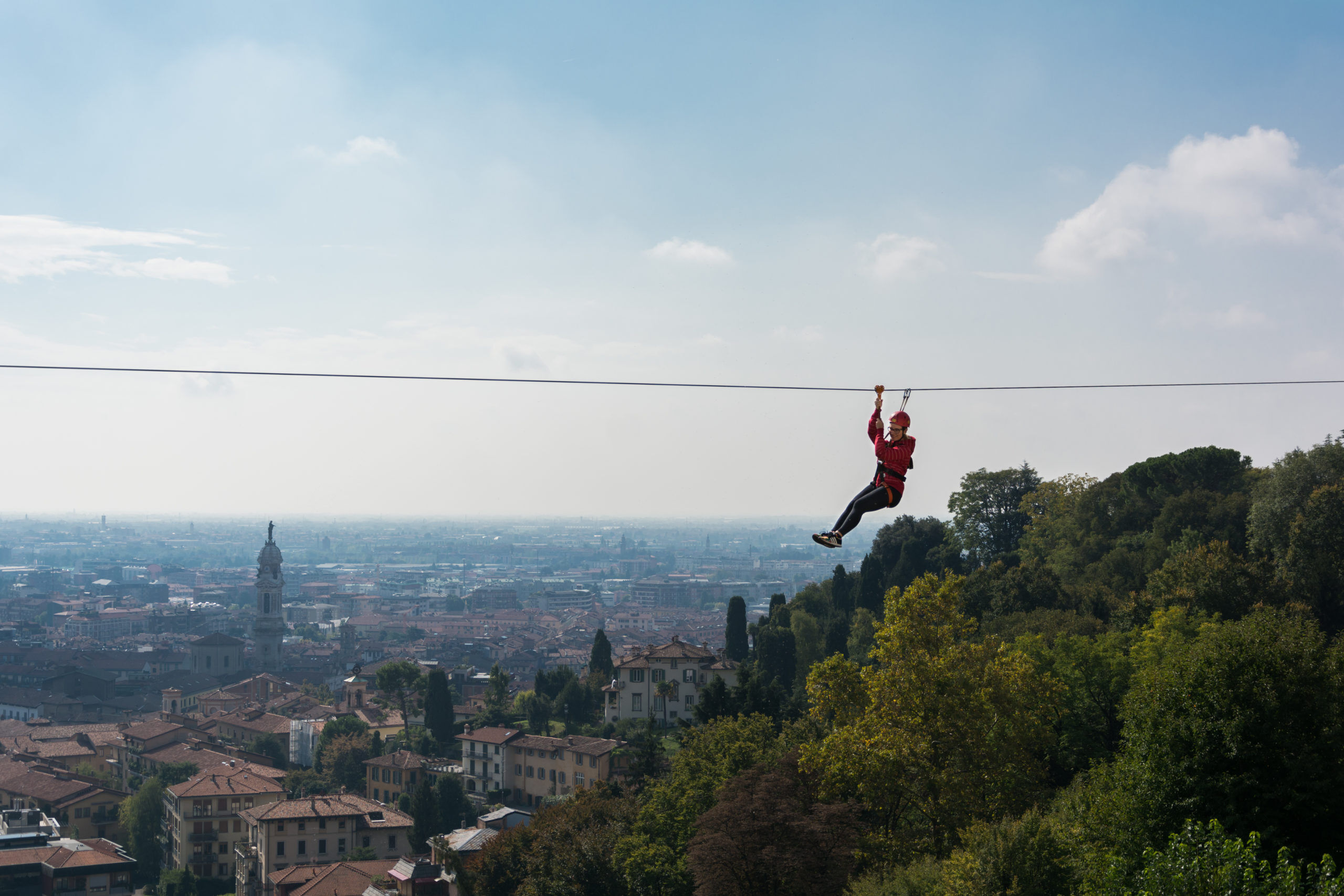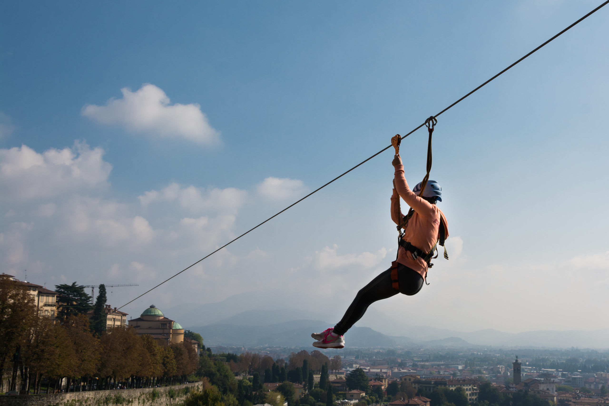 La Teleferica, detta anche Zip Line, è un’attrazione UNICA a Bergamo, adatta a tutti dai 7 anni in su!